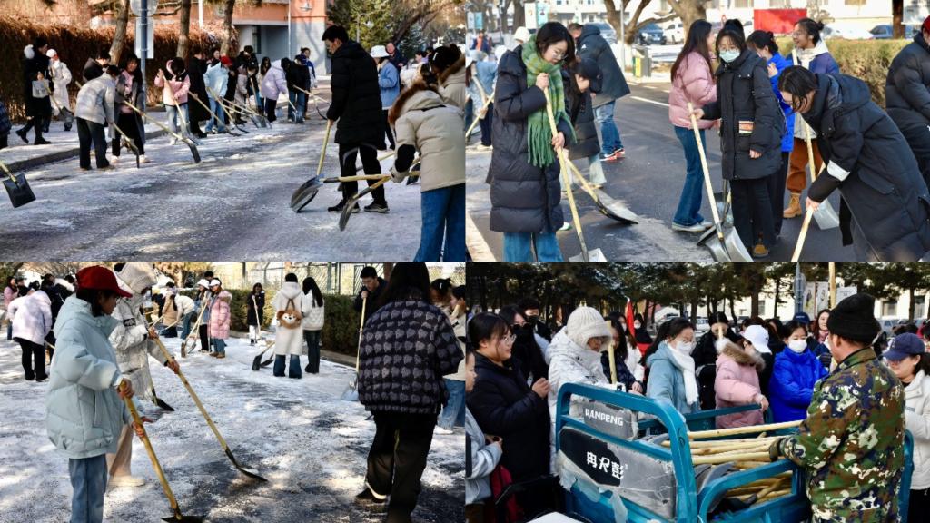 为深入推进党的二十大相关的学习教育,扎实开展“我为青年办实事”主题实践活动,积极发挥团属职能,发挥党员先锋模范作用,强化党员服务意识,提升志愿服务质效,12月12日,beat365英国官网网站党组织广泛动员党员干部开展校园扫雪铲冰工作,清除积雪、扫出道路,为校园师生确保道路安全畅通。