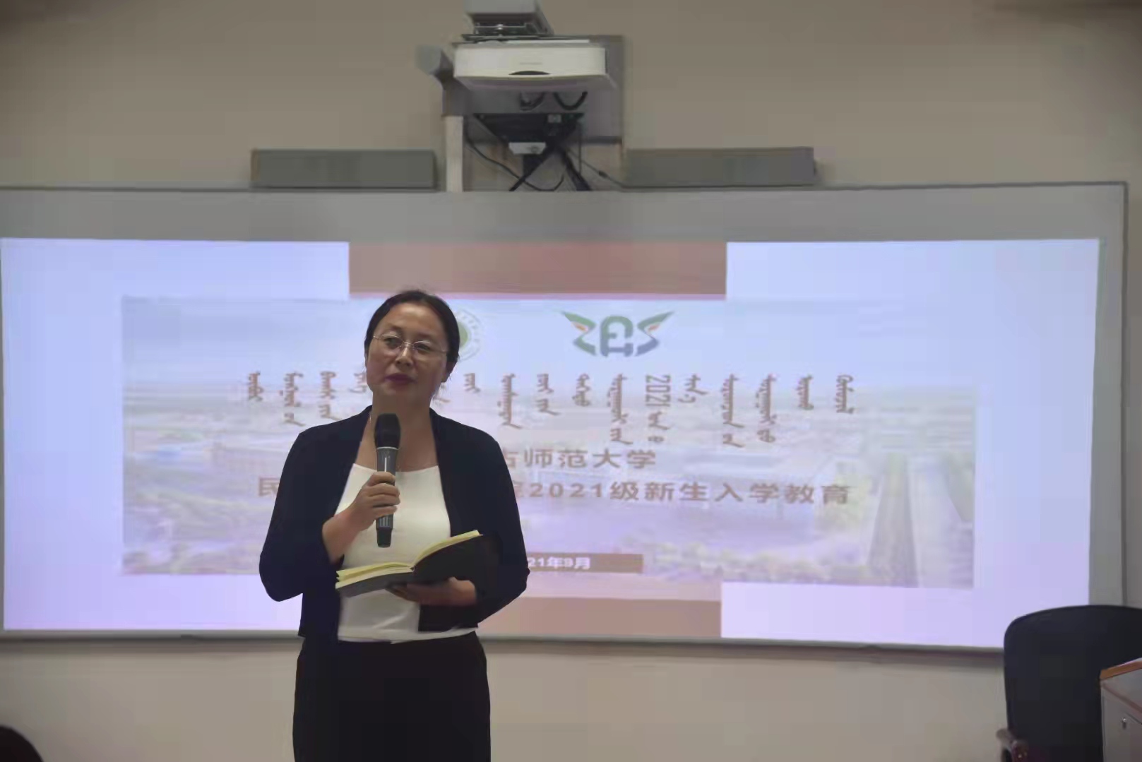 2021年9月8日上午9点,由包凤兰书记主讲、阿荣副书记主持的“守望相助情—铸牢中华民族共同体意识,民族团结教育”在文史楼252教室顺利开展。会上,包书记希望各民族同学要团结友爱、积极上进,像石榴籽一样紧紧抱在一起,共同铸牢中华民族共同体意识。