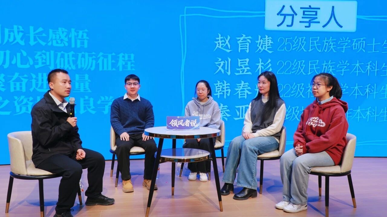 25级民族学硕士生赵育婕分享了考研备考的心路历程以及建立科学备考体系的实用方法。22级民族学本科生刘昱杉系统介绍了推免经验,她提示同学们有针对性准备简历材料并应对多元考核,以及在面试中如何展现专业能力与心理素质。22级社会学本科生韩春辉以“重新定义努力”开篇,分享其从绩点焦虑到热爱驱动的蜕变历程,并分阶段解析成长路径。23级社会工作本科生秦亚楠凭借多项竞赛获奖经历,展示“竞赛突围破局”的具体策略。