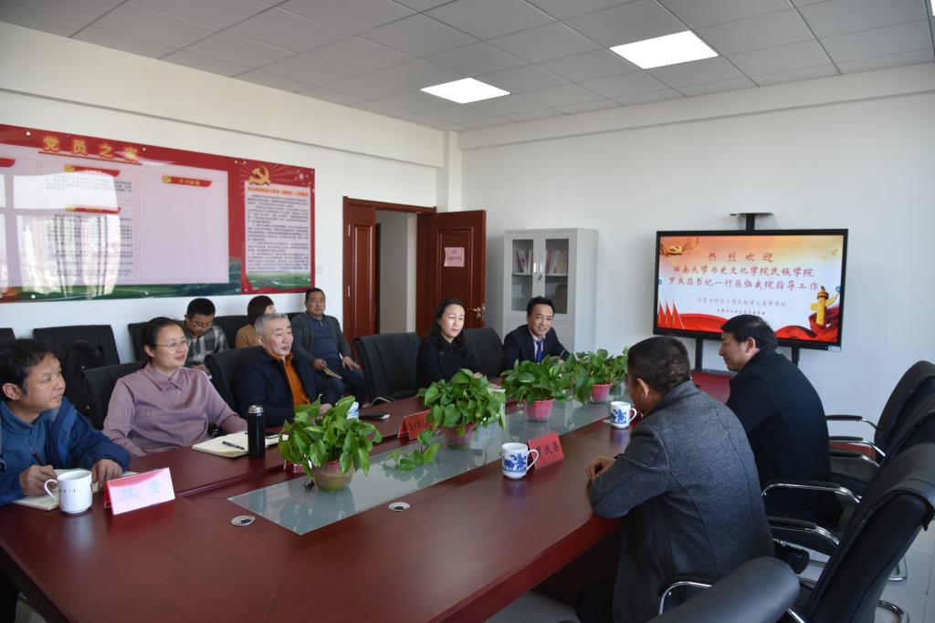 3月22日下午,西南大学历史文化学院民族学院罗庆昌书记、田阡教授一行应邀来beat365官网考察指导,并在beat365官网田楼611党建活动室举行座谈会。beat365官网参加座谈会的有:党总支书记包凤兰、院长乌日陶克套胡、副书记副院长阿荣、副院长满达以及总支委员王瑞军、总支委员杨冰华、教工支部书记双金、行政支部书记包双成、学生支部书记朱苏道等。