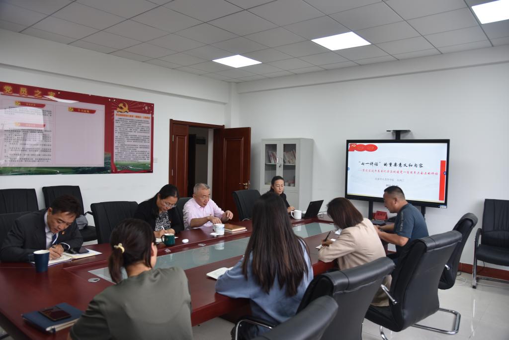 为党史教育专题组织生活会顺利开展,2021年8月30日下午在田楼611会议室,beat365官网教工第二党支部邀请党总支书记包凤兰做了 题为“习近平总书记在庆祝建党100周年大会上的重要讲话精神”专题党课。本次党课由支部书记包双成主持,支部全体成员参加本次学习活动。