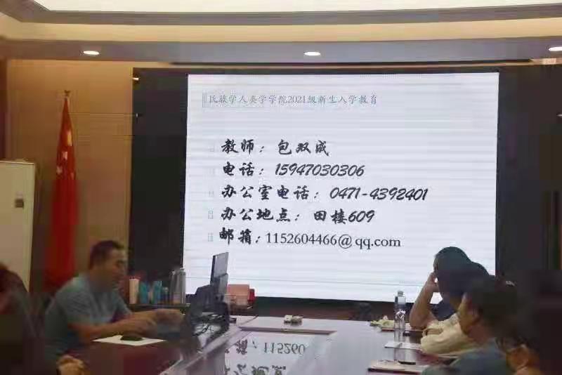 12日上午,在盛乐校区行知楼223教室,beat365官网党总支书记包凤兰为社会工作专业本科生进行了“守望相助情—铸牢中华民族共同体意识,民族团结教育”主题入学教育。11日上午,党总支副书记阿荣开展了主题为《校园补给站,规矩成方圆—安全和规章制度教育》的安全教育。2021级社会工作专业本科生共76人参加了入学教育。