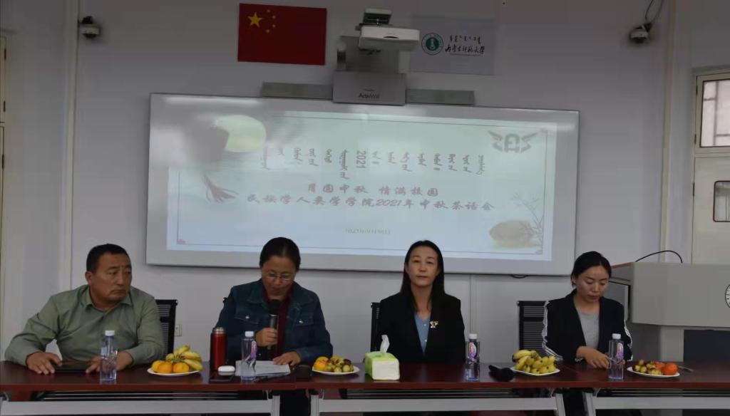 秋风送爽月更圆。中秋佳节,美满时刻,共赏圆月一轮,喜迎中秋良宵。为了让离家求学的学子们体会到beat365英国官网网站大家庭的温暖,beat365官网于2021年9月18日下午14时在田楼十二共教室举行“月圆中秋,情满校园”中秋茶话会。参与本次茶话会的有beat365官网党委书记包凤兰、党委副书记阿荣、团总支书记朱苏道、学工办主任包双成、各年级学生代表以及部分在校学生共120余人。本次茶话会由阿荣书记主持。