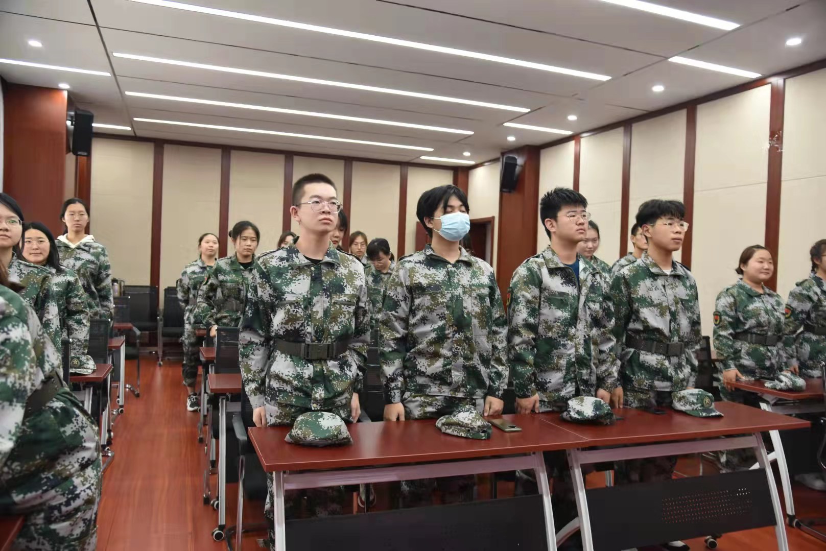 大会第六项 师生共唱校歌,两校区军训动员大会圆满结束。会后教官带大家进行列队,激动人心的军训生活就此开始。