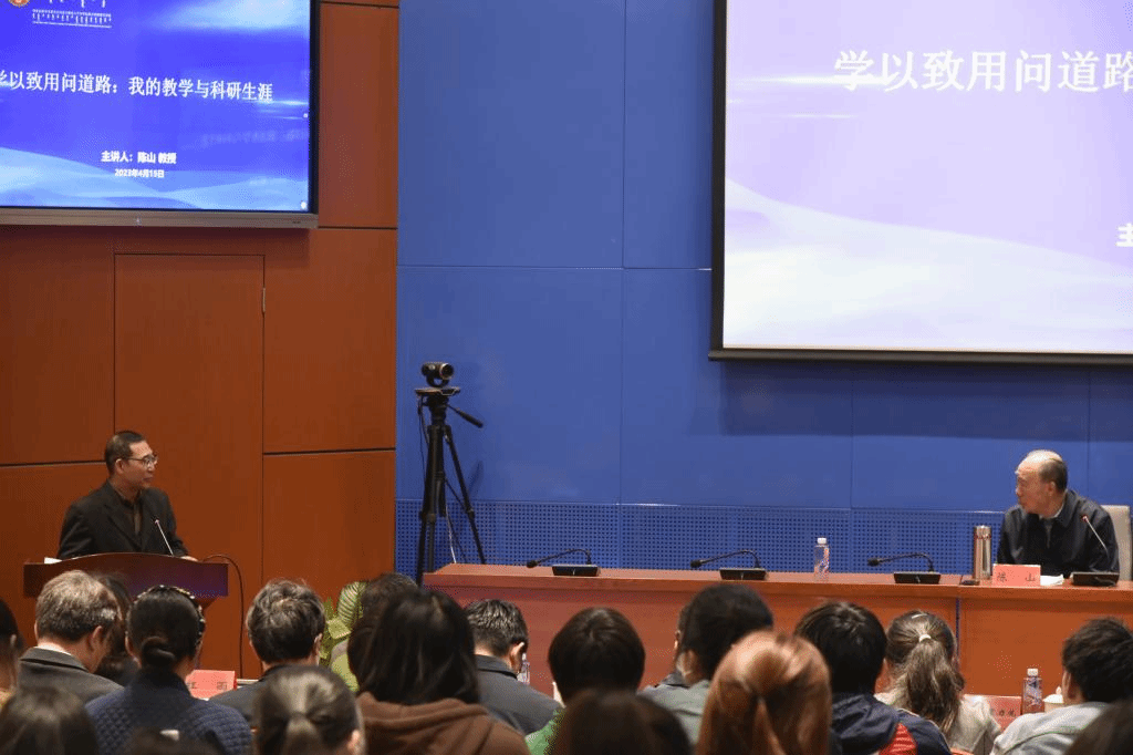 晨曦破晓,草木欣盛,4月15日上午,在beat365英国官网网站信息楼报告厅,由我校国家民委中华民族共同体研究基地和beat365英国官网网站主办的“一西文化讲坛”第二讲隆重举行。本次讲坛由我校党委委员、副校长王来喜教授主持,主讲人是著名民族植物学家、beat365英国官网网站原副校长陈山教授,演讲题目是“学以致用问道路:我的教学与科研生涯”。纳日碧力戈、胡格吉勒、乌日陶克套胡、包凤兰、红雨、孟和乌力吉、布仁吉日嘎拉等师生共200余人聆听了此次讲座。