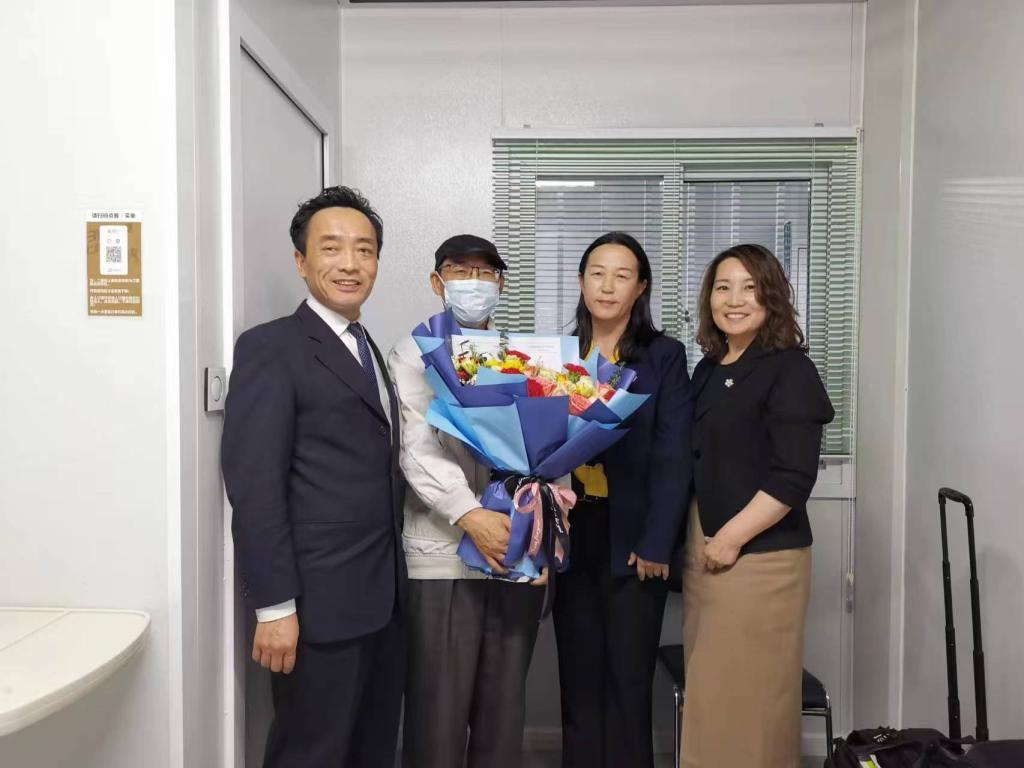 5月10日,beat365英国官网网站党委书记包凤兰、副院长满达带领学院工会负责人常散丹老师慰问在病房抗疫并带病坚持工作的纳日碧力戈教授。