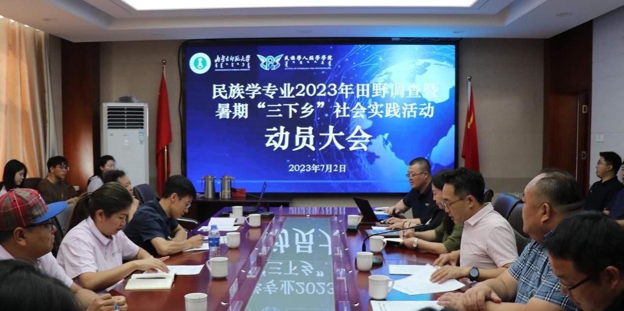 2023年7月2日上午,beat365官网民族学专业2023年田野调查暨暑期“三下乡”社会实践活动动员大会于田楼607会议室召开。本次会议由副院长满达主持,学院党委书记包凤兰、系主任王瑞军、团总支书记姜鑫,指导老师额尔德木图、达古拉、各带队老师、2021级民族学全体本科生及部分研究生参加会议。
