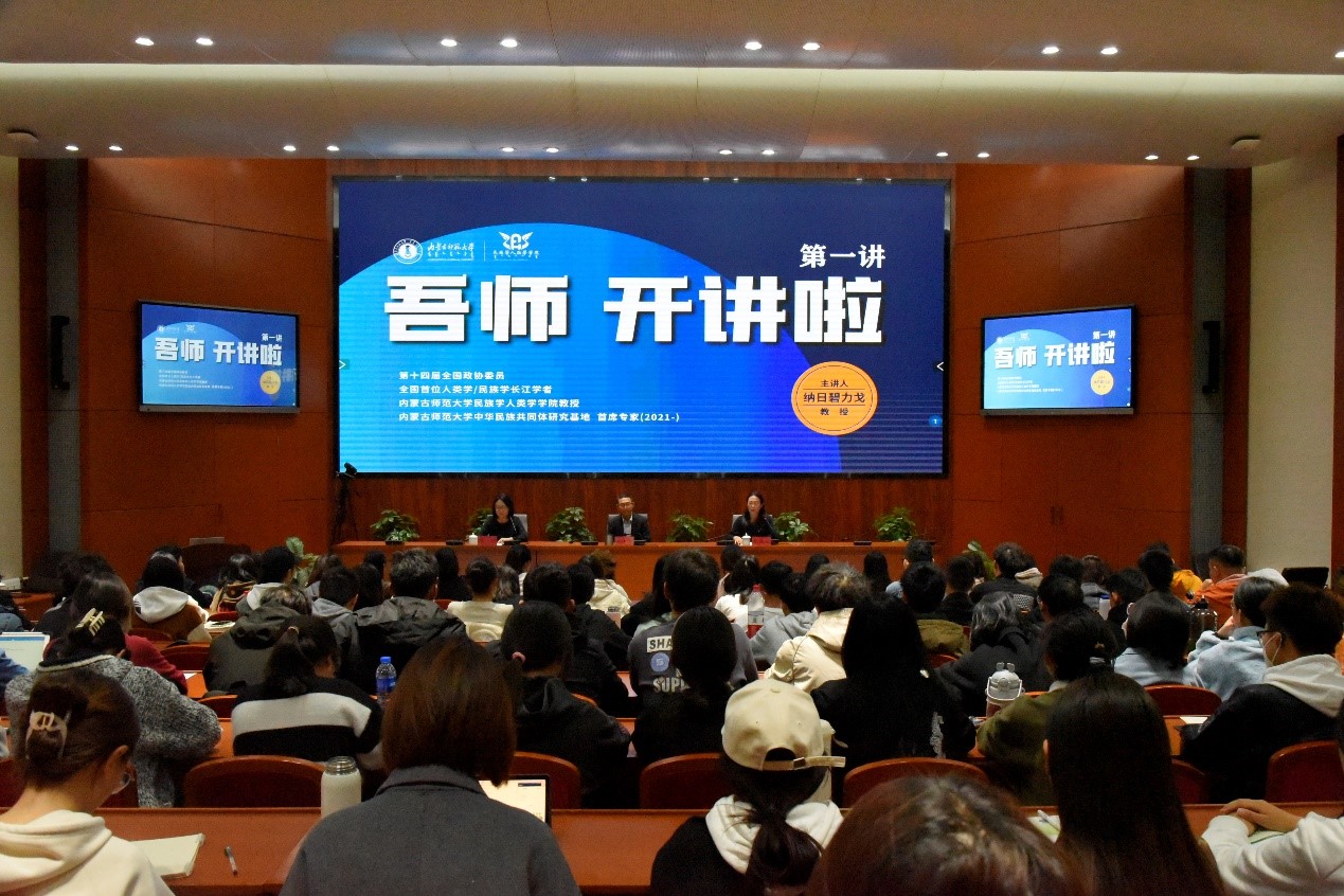 11月3日上午8:30,beat365英国官网网站学风建设系列讲座"吾师·开讲啦"在信息楼报告厅隆重开坛,并邀请我校资深教授纳日碧力戈进行首场讲座,beat365英国官网网站党委书记包凤兰出席并致辞,本科生、研究生和部分教师参加。讲座由学院党委副书记副院长陆一琼主持。