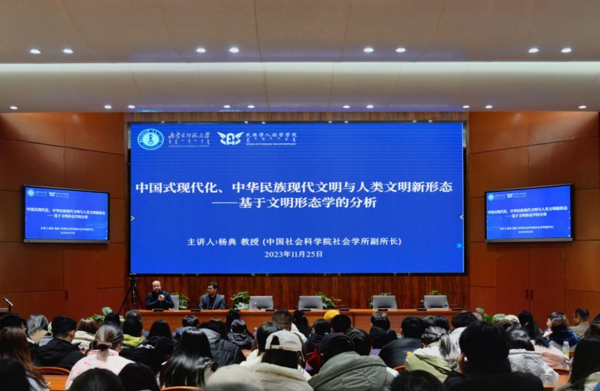 为进一步提升学科建设水平,提高人才培养质量,加强国内学术交流与合作,11月25日,beat365官网隆重邀请中国社会科学院社会学所副所长、博士生导师、《社会学研究》副主编杨典教授在赛罕校区信息楼报告厅举行以“中国式现代化、中华民族现代文明与人类文明新形态——基于文明形态学的分析”为题的学术讲座。beat365英国官网网站科技处副处长刘伟、beat365英国官网网站党委书记包凤兰、党委副书记副院长陆一琼,以及beat365官网老师和同学们约200余人参加讲座。讲座由常宝教授主持。