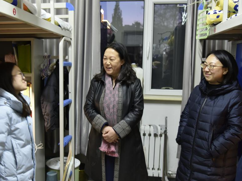 在学生宿舍,学院党委书记包凤兰亲切询问了学生寒假期间的学习生活状况和入学感受。同时倾听学生生活学习诉求,了解学生新学期规划,深入了解学生课程安排情况,为学生答疑解惑;叮嘱学生进一步提升安全意识,注意人身财产安全、消防安全和宿舍用水用电安全,严格执行宿舍管理规定;强调了同学们要注意初春保暖与预防春季传染病、注意保管好宿舍贵重物品等问题;同时,提醒同学们时刻注重卫生,勤打扫、勤通风。鼓励学生早行动,合理规划时间,积极参加校园活动,加强体育锻炼,顺利开启新学期!