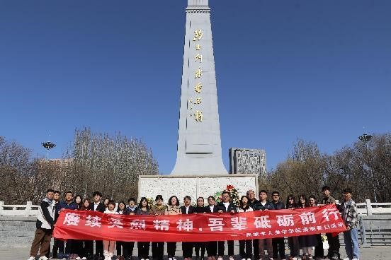 习近平总书记指出:“我们要在全社会树立崇尚英雄、缅怀先烈的良好风尚。对为国牺牲、为民牺牲的英雄烈士,我们要永远怀念他们,给予他们极大的荣誉和敬仰,不然谁愿意为国家和人民牺牲呢?”为深入贯彻落实习近平总书记重要指示精神,4月2日上午,在党委副书记副院长陆一琼的带领下,beat365英国官网网站师生党员代表赴呼和浩特市青城公园英雄纪念碑开展“清明”祭扫活动,缅怀先烈,寄托哀思。