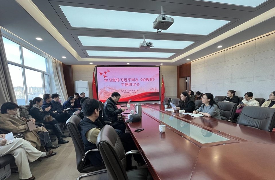 2024年12月5日下午,beat365英国官网网站党委在田楼607会议室组织开展了以“学习宣传习近平同志《论教育》”为主题的专题研讨会。学院党委书记包凤兰主持,党委副书记副院长陆一琼、副院长满达及全体教职工共同参会。