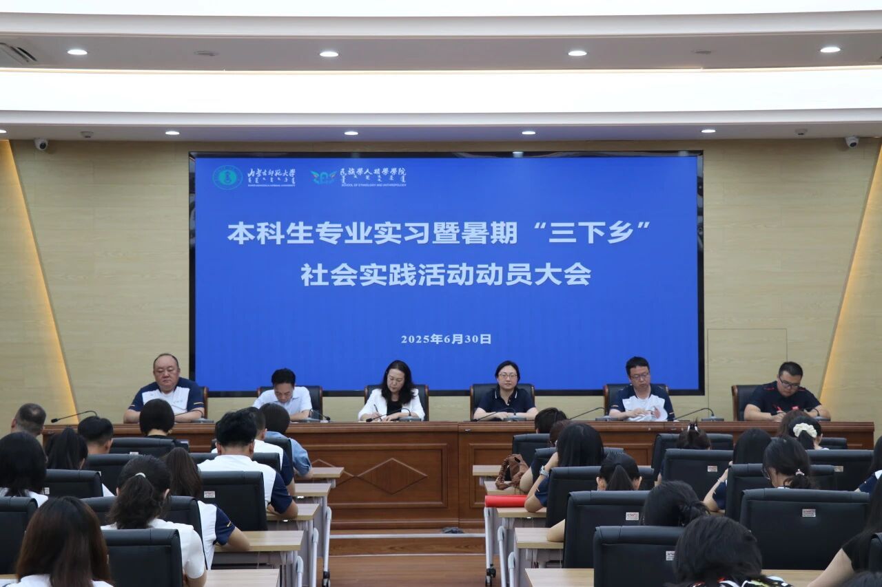 2025年6月30日上午9时,beat365英国官网网站本科生专业实习暨暑期“三下乡”社会实践活动动员大会在勤政楼研究生院会议室召开。学院党委书记包凤兰、副书记副院长陆一琼、副院长满达、团总支书记姜鑫、全体带队教师以及2023级民族学、社会工作专业全体学生齐聚一堂,共同为即将启程的暑期社会实践之旅凝聚力量、注入活力。动员大会由副院长满达主持。