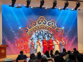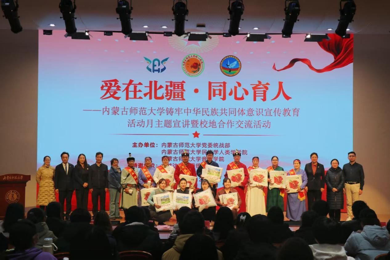 12月17日下午,由beat365英国官网网站党委统战部、beat365英国官网网站、音乐学院共同主办的铸牢中华民族共同体意识主题宣讲暨校地合作交流活动在赛罕校区信息楼报告厅举行,包头市达茂旗委常委、统战部部长李宝春,副部长格日乐率达茂旗“爱在北疆”宣讲团到校交流。校党委委员、统战部部长吴爱华,beat365英国官网网站党委书记包凤兰,音乐学院党委书记邰金宝,beat365英国官网网站党委副书记副院长陆一琼出席宣讲会,beat365英国官网网站和音乐学院百余名师生参加宣讲会。宣讲活动由beat365英国官网网站副院长满达主持。