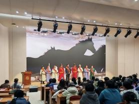 宣讲会中也穿插了精彩的节目,宣讲团成员展示了《骑兵荣耀代代传》、《我也是草原的孩子》等合唱,beat365英国官网网站音乐学院师生也献上了《牧人》等民歌联唱。故事与歌声交织,历史与现实对话,生动呈现了北疆大地各族人民手足相亲、守望相助的动人图景。