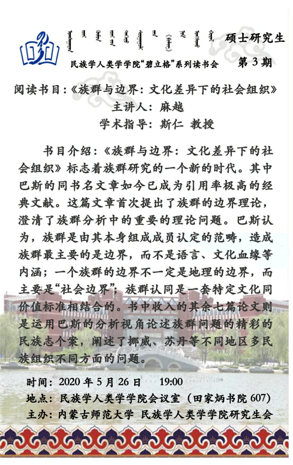 “碧立格”系列读书会硕士研究生第3期预告