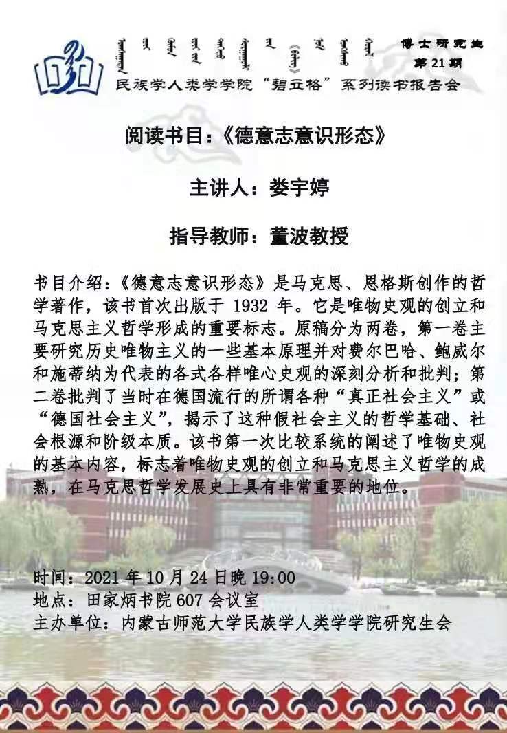“碧立格”系列读书会博士研究生第21期预告