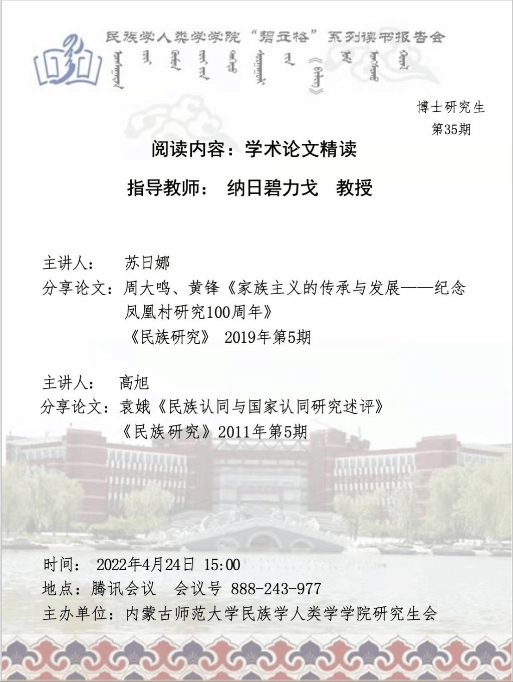 主讲人:苏日娜 高旭 2021级民族学博士研究生