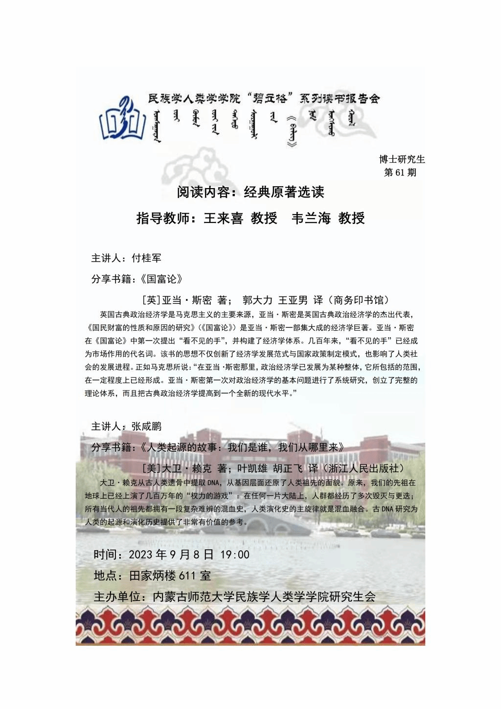beat365英国官网网站“碧立格”系列读书报告会预告博士研究生第61期