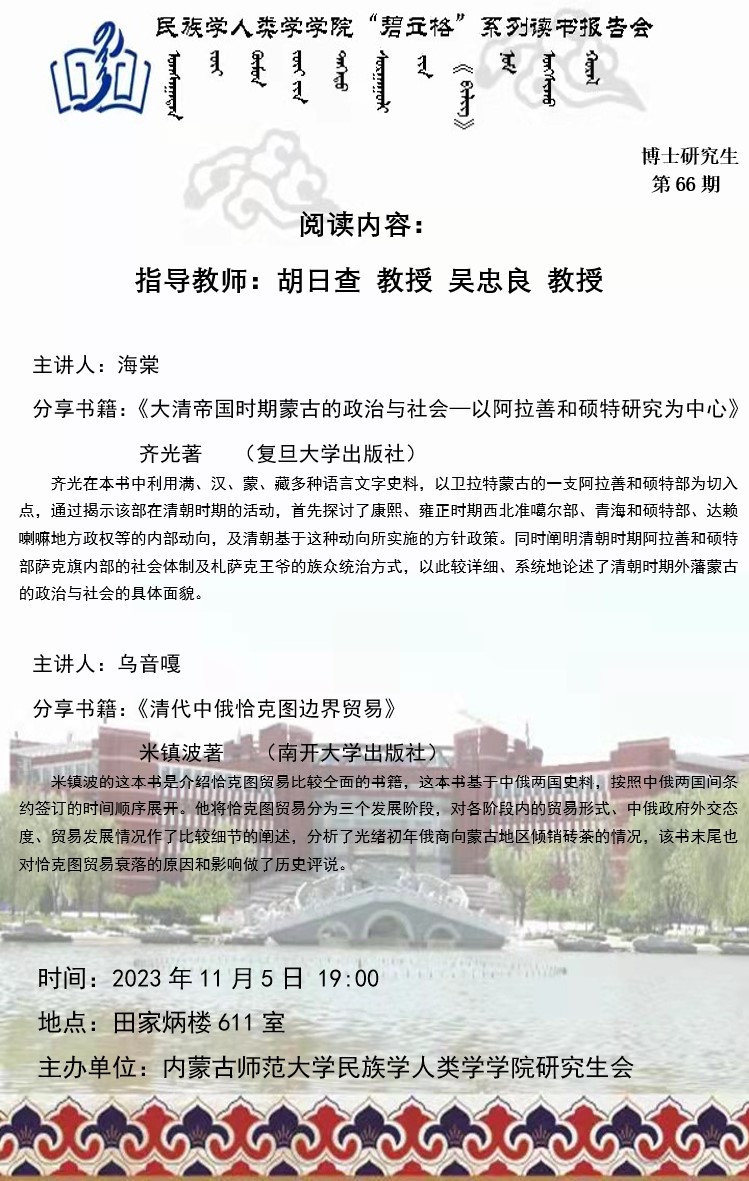 beat365英国官网网站“碧立格”系列读书报告会预告博士研究生第66期