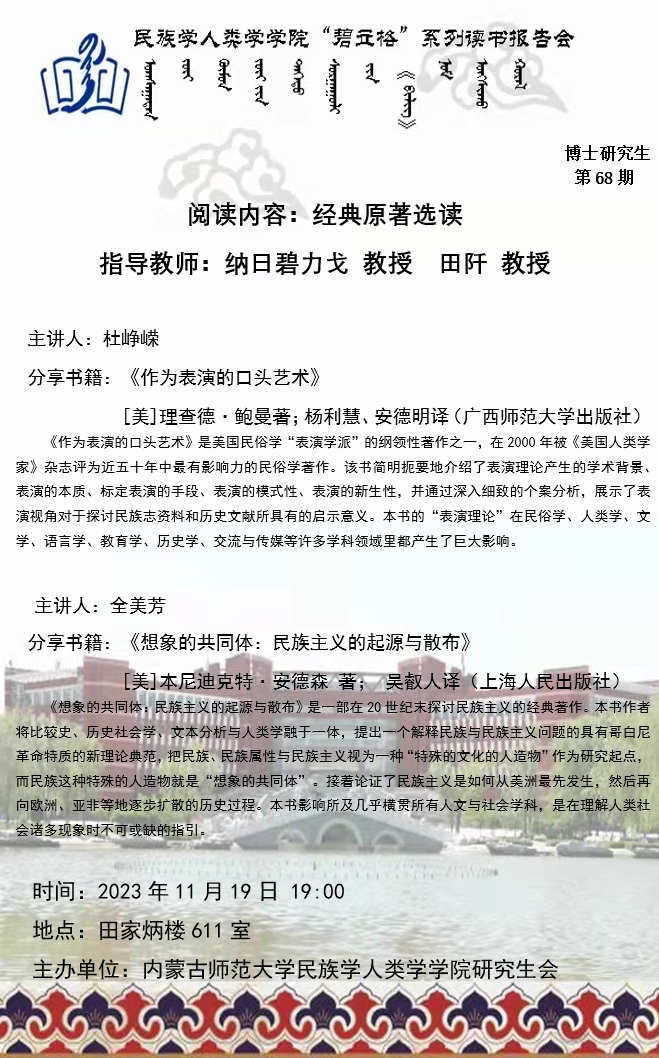 beat365英国官网网站“碧立格”系列读书报告会预告博士研究生第68期