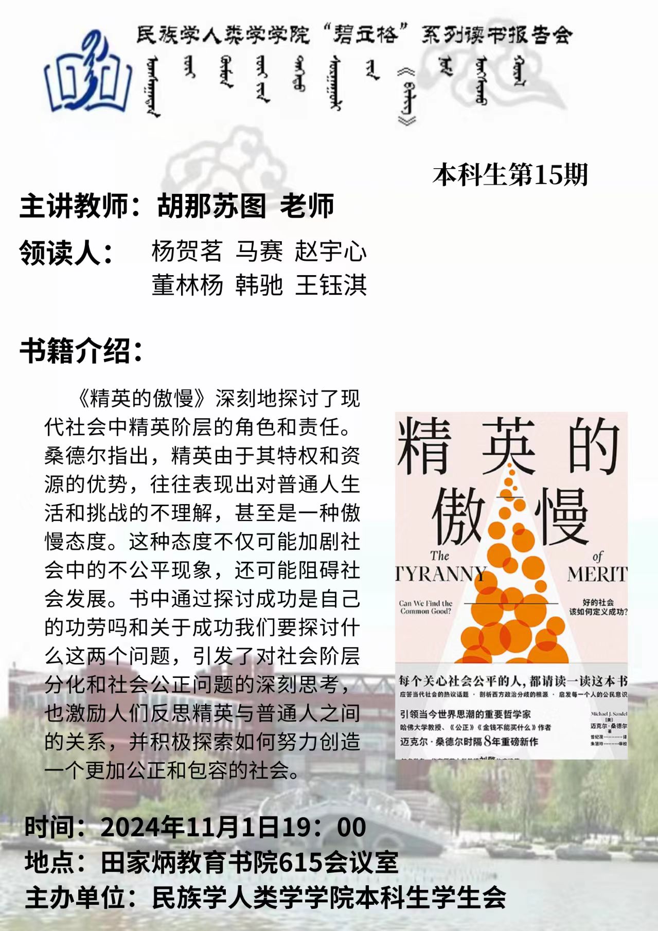 beat365英国官网网站“碧立格”系列读书报告会预告 本科生第15期