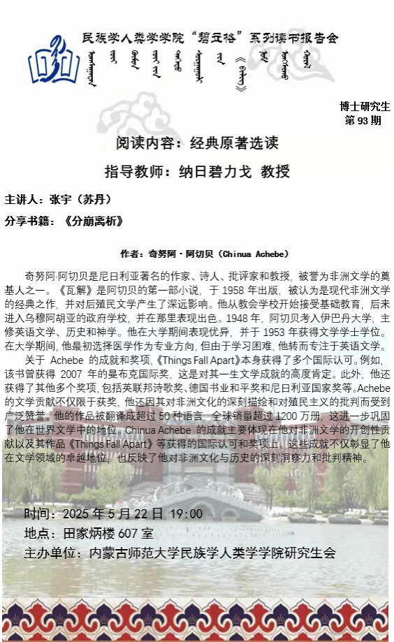 beat365英国官网网站“碧立格”系列读书报告会预告博士研究生第93期