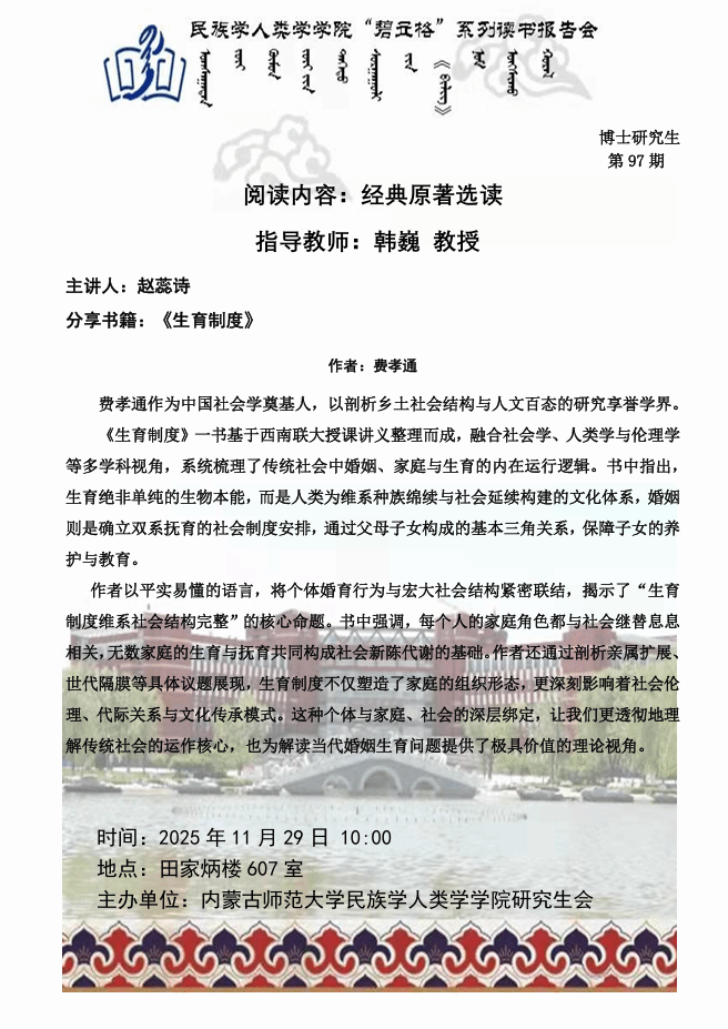 beat365英国官网网站“碧立格”系列读书报告会预告博士研究生第97期