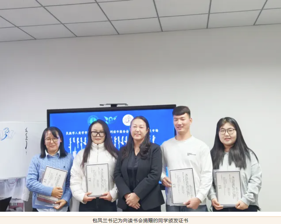 第二阶段是对2024年度读书会的总结。碧立格系列读书会中国少数民族史专场能够一直顺利开展,离不开老师和同学的大力支持。碧立格系列读书会是beat365英国官网网站于2019年创办的读书活动。长期以来,在本硕博不同层次的学生当中开展,收益很多,也有了一定的影响。碧立格系列读书会中国少数民族史专场至今已开办14场,25位师生进行了好书分享。而且,一直以来获得国家项目的教师和获得国家奖学金的同学们在不同程度地为读书会捐赠书籍或资金支持,为同学们提供了更广阔的阅读天地,拓宽了学术视野。在现场由梅荣副教授和那日苏博士分别为近期分享读书心得的6位同学赠送书籍。
