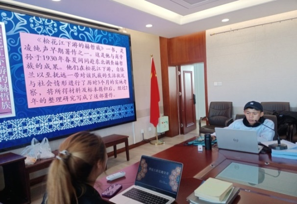 报告后,师生们开展了热烈的讨论,胡日查教授、那日苏博士、李玉峰博士、齐英博士、范尊博士分别就以上三位同学的读书报告做出了点评,学生们也踊跃提出了自己的疑问和见解。其次由中国少数民族史专业学位点负责人谢咏梅教授对本次读书报告会进行了总结,对首次分享读书心得体会的一年级研究生们给予了肯定和鼓励,希望同学们保持读书兴趣和热情,由浅到深,增加读书量并加强专业性。最后由beat365英国官网网站优秀研究生导师称号获得者谢咏梅老师和2021年度国家奖学金获得者2019级研究生奥运同学分别资金支持读书报告会,同时老师们为第6次和第7次作读书报告的六位同学给予鼓励和嘉奖。至此,本次读书报告会圆满结束。