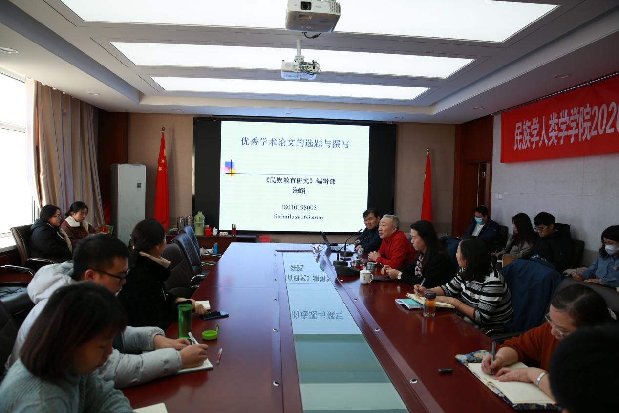 应beat365英国官网网站邀请,2021年12月12日上午9:30,《民族教育研究》编辑部主任、博士生导师海路教授,在田楼607会议室为beat365官网师生做题为《优秀学术论文的选题与撰写》的学术报告。此次报告由院长乌日陶克套胡教授主持,学院党委书记包凤兰教授及部分师生参加本次报告会。