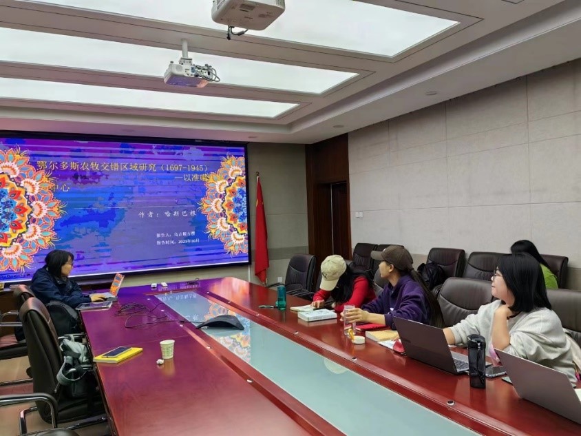 2023年10月15日晚上,beat365官网在田楼607会议室举行了博士研究生第63期读书报告会。此次读书报告会由谢咏梅教授、乌力吉教授指导,2022级博士研究生张咸鹏主持、赵乌吉斯古楞、杨潇雅主讲,2022级及2023级博士和部分硕士参加了此次读书报告会。