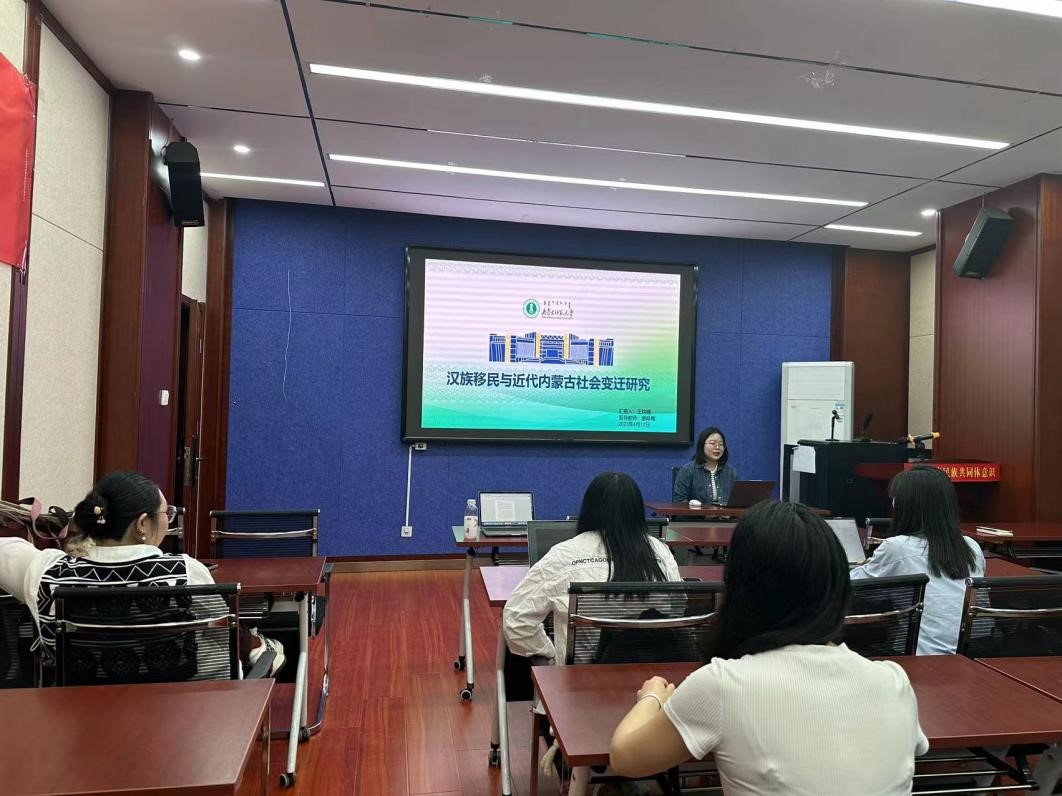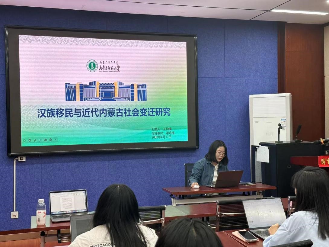 王钧楠同学分享了闫天灵所著的《汉族移民与近代内蒙古社会变迁研究》。此书基本上廓清了清代、民国时期内蒙古社会变迁的总体形势及走向,着重借鉴吸收了中外学者在移民总量、清代蒙地开垦进程、“移民实边”、土地制度、租佃关系、蒙旗制度等方面的深度研究成果,进而得以对汉族移民的类型特征与路线分布、民国时期的移民开垦、蒙汉两族的交往机制、汉族移民社会的成长序列、旗县利权分割与蒙汉双重负担、塞外经济文化格局的重构及生态问题等以往研究较为薄弱的领域进行集中攻关。全书对社会历史事象进行纵切式研究,以“问题”统领全局,对于民族关系、移民的本土化、移民社会控制等民族学、社会学意义上的普遍性话题,产生新的民族学和社会学经验。
