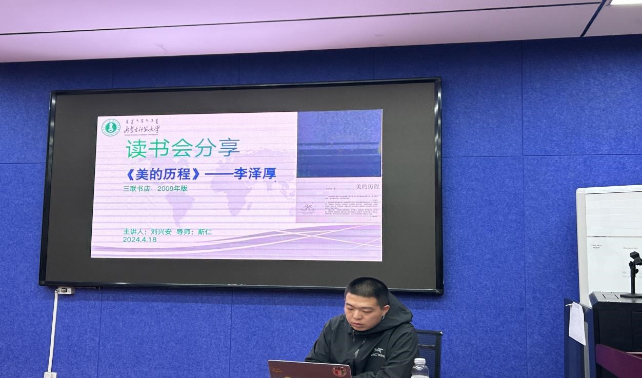 刘兴安同学重点介绍了李泽厚先生《美的历程》的推荐缘由、创作背景、主要内容、读后感受,从美术史角度,中国美学发展角度,最后通过艺术与哲学的角度对“有意味的形式”进行了解释和阐述,说明了艺术家主观审美情感的表现和创造,李泽厚先生也对中国古代美学几大变局进行了分析,例如魏晋的“人的觉醒”,唐朝的中国“文艺复兴”以及从宋代的“无我之境”到元代的“有我之境”,以及明清时期的世俗人境。